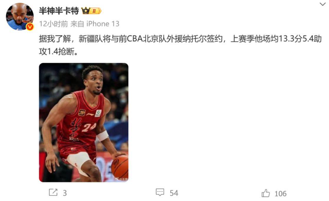考虑到上赛季在北京并没有给自己打出太多身价,这次加盟新疆,纳托尔估计也花不了太多钱,且因为现在外援薪资大多数都是非保障(需要达到一定的时间才能全额保障),所以如果纳托尔发挥不佳,新疆将其裁掉,更是不会有太大影响。但对于新疆而言,如果他们下赛季要保证战绩,争取进入前四甚至是总决赛,纳托尔这种已经证明过自己不能打硬仗的小外,确实不该是新疆的选择。